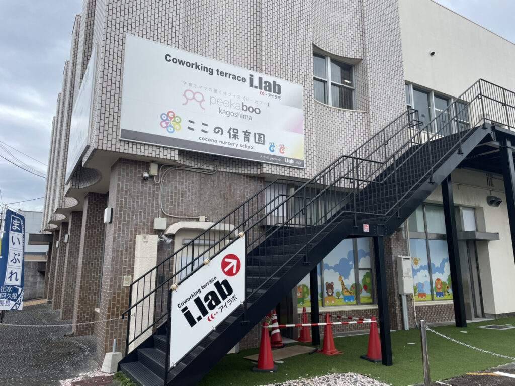peekaboo鹿児島と「ここの保育園」に向かいます。オフィスの1階に保育園があるので、送り迎えも負担になりません。子どもがすぐそばにいるおかげで、安心して働けます!